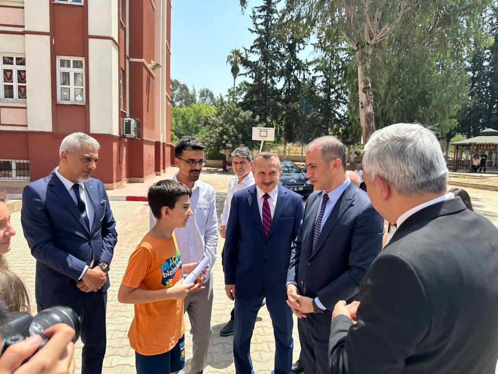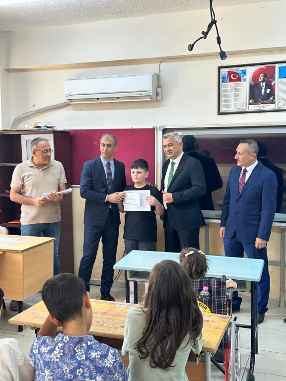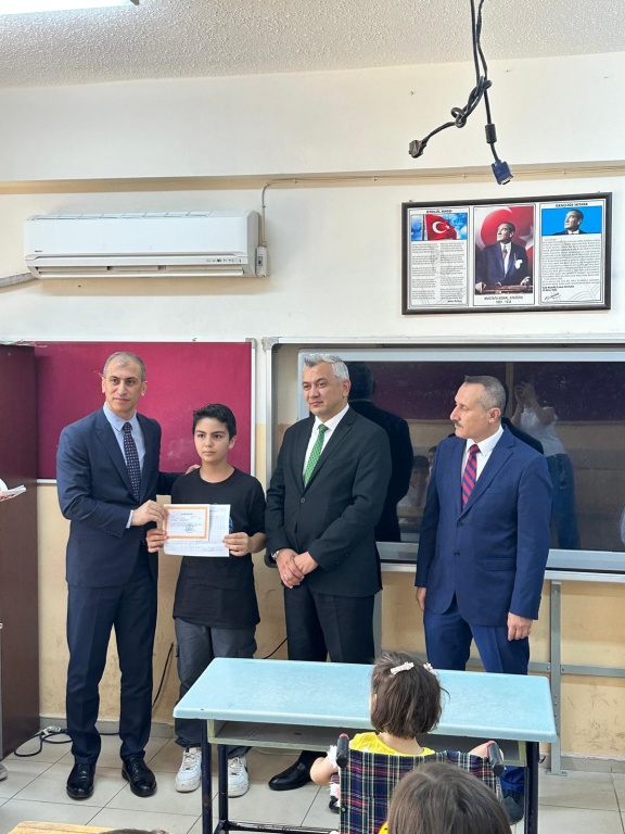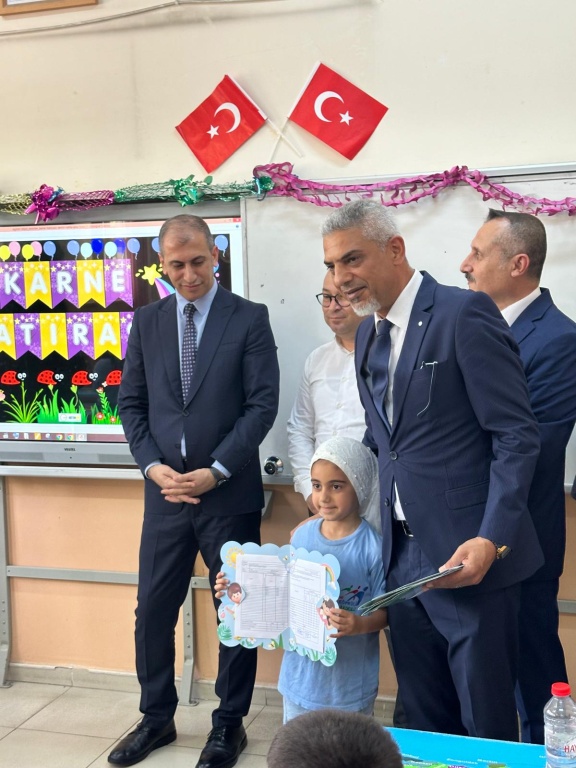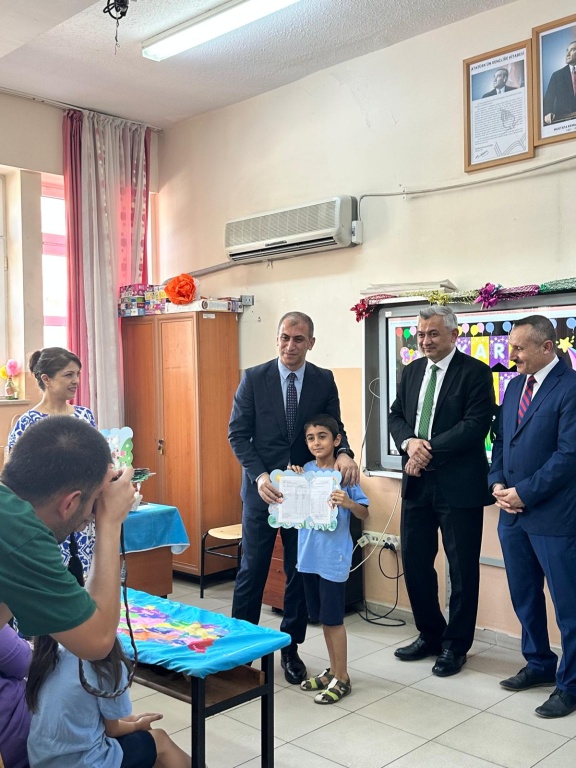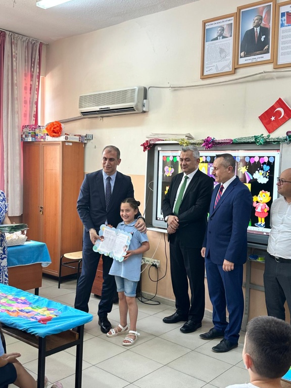 Kaymakamımız Sayın Mehmet AKSU, İlçe Milli Eğitim Müdürümüz Sayın Tolga TEMİR ve Şube Müdürümüz Uğur ŞAHİN okulumuzda karne törenine katılarak öğrencilerimizin karne heyecanını paylaşmışlardır.